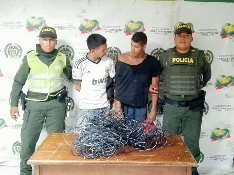 John Henry Linero Acosta y Sleider Mejía Montes mientras hurtaban elementos pertenecientes al sistema de distribución de energía eléctrica, propiedad de la empresa Electricaribe.