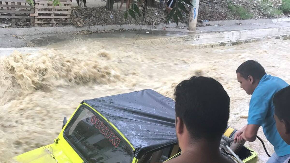 Tres adultos, un bebé y un perro, según habitantes del barrio Las Moras, en Soledad, fueron evacuados este lunes de un vehículo que fue sorprendido por el arroyo de El Salado. La emergencia ocurrió a las 3 de la tarde, mientras llovía por diversos puntos del municipio y del sur de Barranquilla. Vecinos del sector amarraron el automotor que transitaba por la vía-canal para evitar que el agua lo arrastrara.