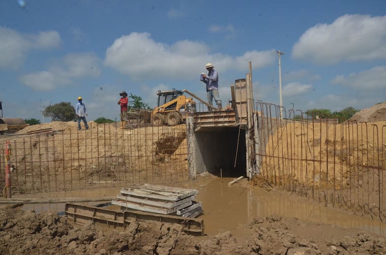 En otra zona se vienen ejecutando las actividades de instalación de terraplén con material seleccionado y se lleva un avance del 75%. En las actividades de construcción de drenajes se encuentran intervenidas 12 unidades de box coulvert con un avance del 60% sobre este tramo.