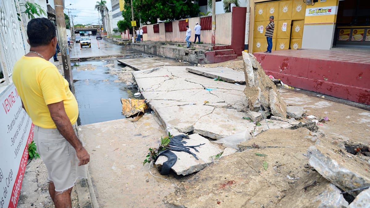 En el Barrio Abajo, vecinos de la calle 48 con carrera 46A reportaron una emergencia por el levantamiento de cuatro placas de vía luego de las intensas lluvias de este lunes.
