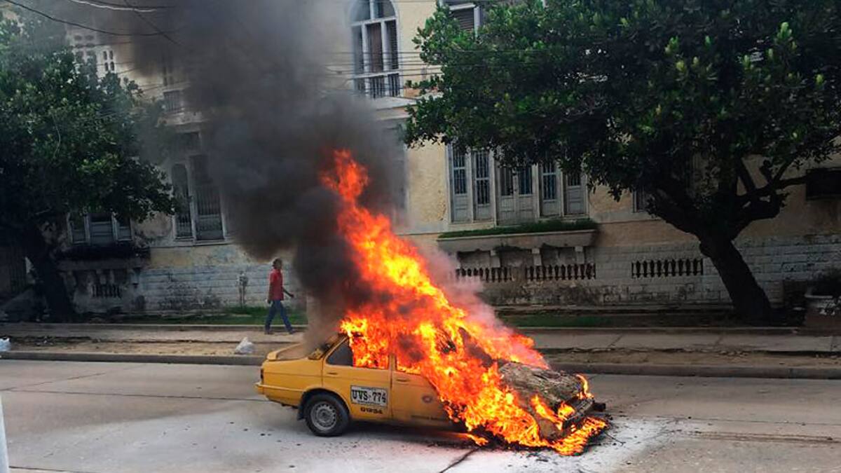 'Yo venía del centro cuando vi que el carro empezó a botar fuego', contó a EL HERALDO Marco Lara, propietario del taxi quien se encontraba realizando un servicio en el momento del incendio.