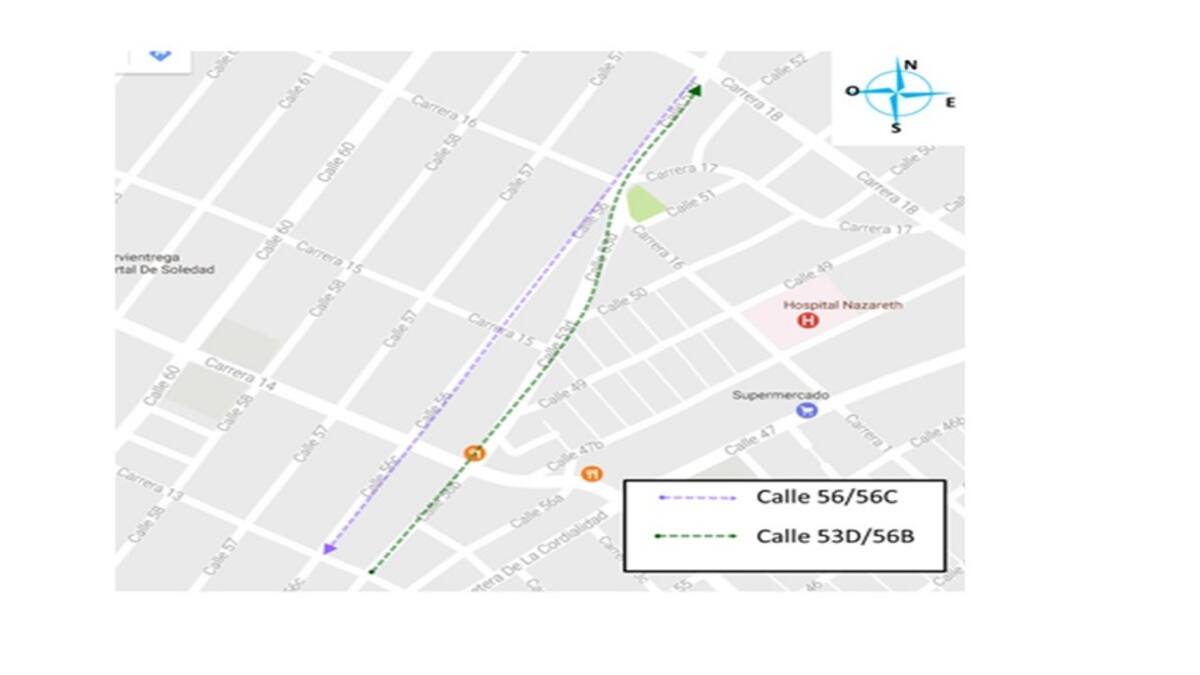 La entidad también comunicó que se cambiará el sentido de la calle 56B, entre carreras 13 y 16. Esta vía pasará de doble sentido a único sentido vial se sur a norte.