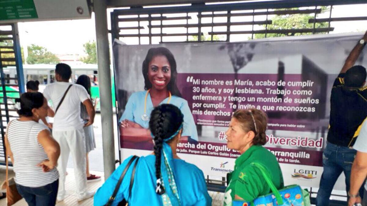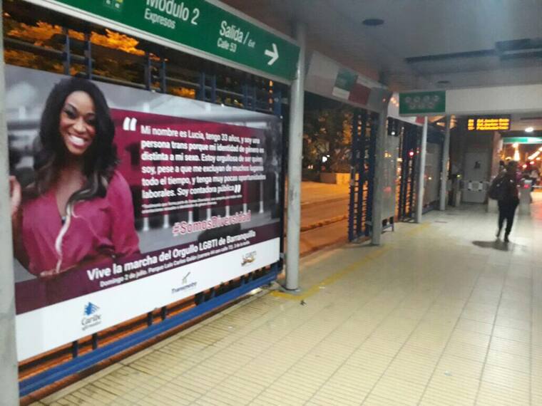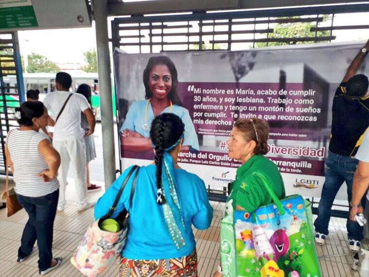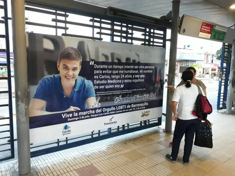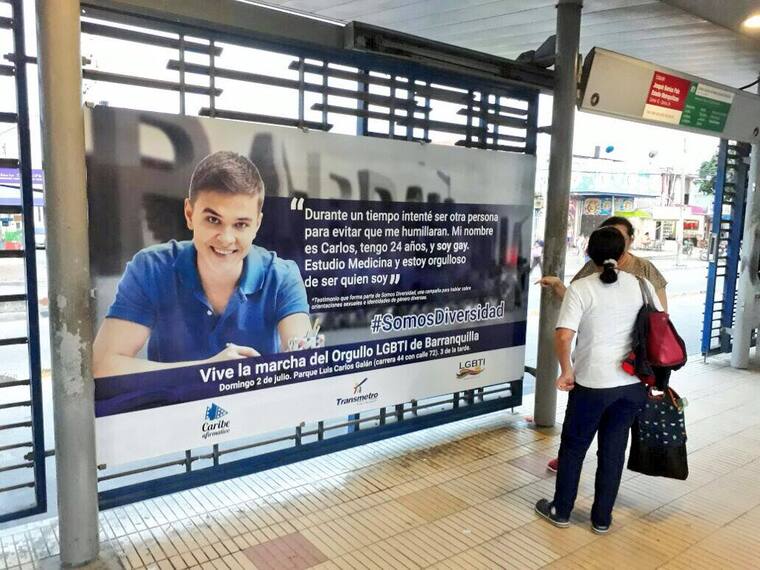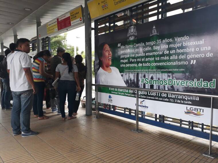 Caribe Afirmativo llenó las estaciones del sistema de transporte masivo Transmetro con historias de personas LGBTI en medio de la campaña ‘Somos Diversidad’ en el mes del Orgullo Gay. La organización aseguró que “es la primera vez que un sistema de transporte masivo en el país promueve los derechos de lesbianas, gais, bisexuales, trans e intersex”.