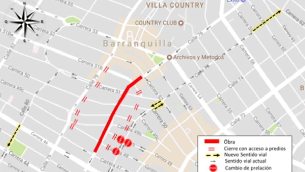 Según la Secretaría, la calle 75 cambia de único a doble sentido vial desde la carrera 50 hasta la carrera 52. Esta misma calle cambia de doble a único sentido vial sur-norte entre las carreras 59 y 62. La calle 80 cambia de doble a único sentido norte-sur desde la carrera 46 hasta la carrera 44.