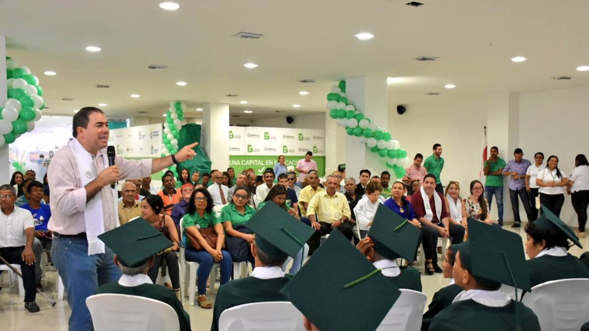 'Hoy nos sentimos orgullosos de ustedes. Se que se han esforzado y han creido en sus sueños. Los felicito porque tomaron la decisión de seguir adelante, no se trata de caerse sino de levantarse', manifestó el jefe de esta cartera, Santiago Vásquez. Del evento también participó la secretaria de Educación, Bibiana Rincón.
