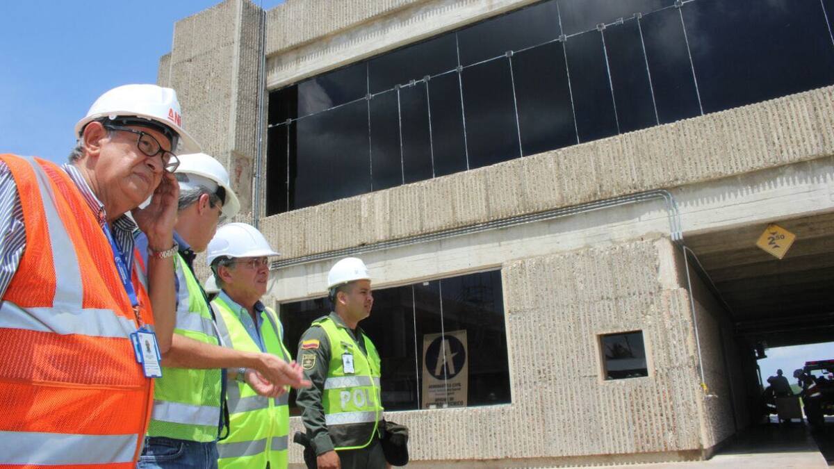 Cardona también visitó la zona donde se está habilitando el terminal de chequeo temporal (tipo hangar climatizado) de 1.600 metros cuadrados donde estarán ubicados los counters o mostradores de chequeo de las diferentes aerolíneas, lo que permitirá intervenir constructivamente la nave central del edificio para ejecutar los trabajos de reforzamiento, las adecuaciones para el nuevo sistema de maletas, oficinas de atención y sistema de información de vuelos.