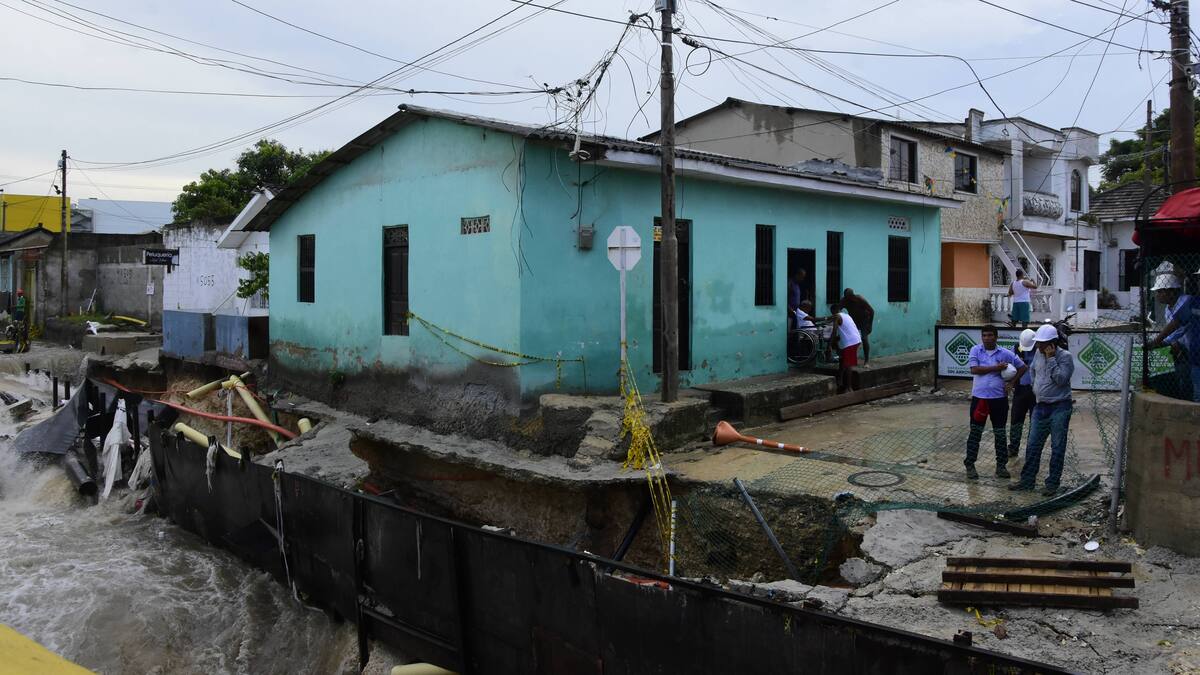 Luis Altamar, propietario de la vivienda, contó que él y sus familiares escucharon un fuerte estruendo durante la lluvia y al salir se dieron cuenta de que la fuerza de la corriente había arrastrado con parte del andén de su casa.