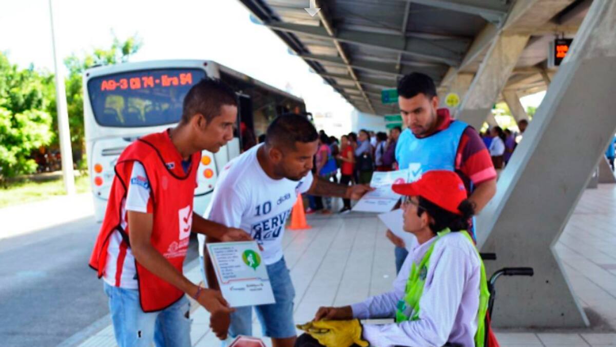 En esta ocasión fueron 30 miembros de las barras del Junior de Barranquilla quienes se sumaron a la sensibilización del cuidado y buen uso del Transmetro, el sistema de transporte masivo que es vital para la movilización de cientos de barranquilleros, y que se ha convertido en uno de los elementos que aportan a la identidad de la ciudad.