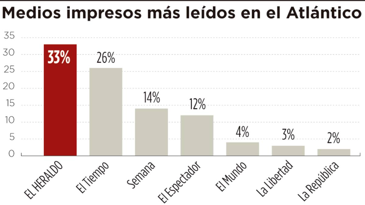 Los resultados de la encuesta indican que el 33% de los líderes de Atlántico consulta este medio de comunicación. Esta cifra significa un crecimiento de 6 puntos si se compara con el porcentaje del año anterior, cuando fue leído por el 27% de los líderes encuestados.