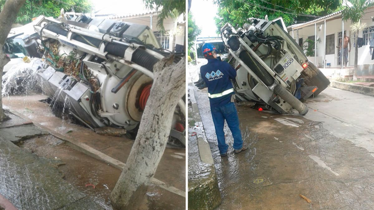 Sobre el hecho, Triple A informó que cuando ocurrió el incidente el camión se dirigía hacía la calle 36 con carrera 11C con el fin de realizar labores de mantenimiento en la red de alcantarillado del barrio.