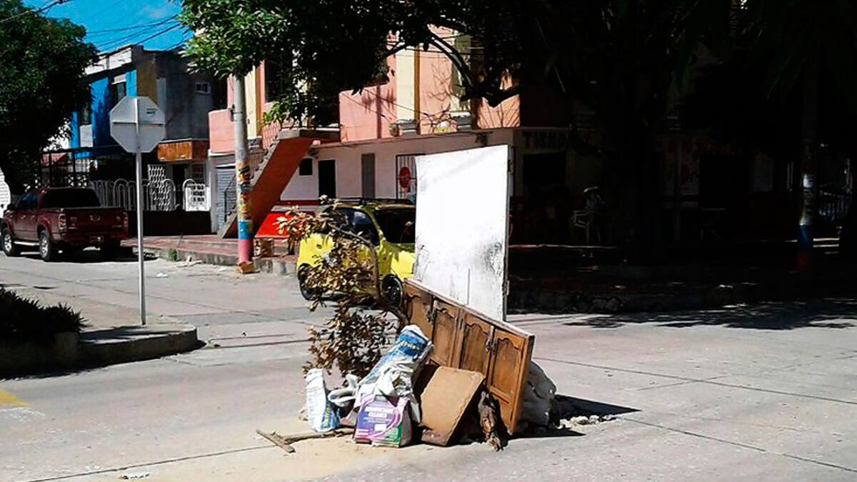 Precisamente para evitar los accidentes, los habitantes de Los Pinos decidieron ubicar ramas y trozos de madera sobre el hueco a manera de advertencia, aunque 'algunos ciudadanos inescrupulosos lo han tomado para dejar bolsas de basuras', según informaron.