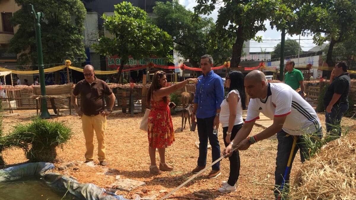 La escenificación del nacimiento de Jesús, en Belén, fue construida con materiales reciclables y elementos naturales, cuenta con senderos peatonales que hacen posible recorrerlo, un lago simulado y tres reyes magos en sus camellos de 3 metros de altura.