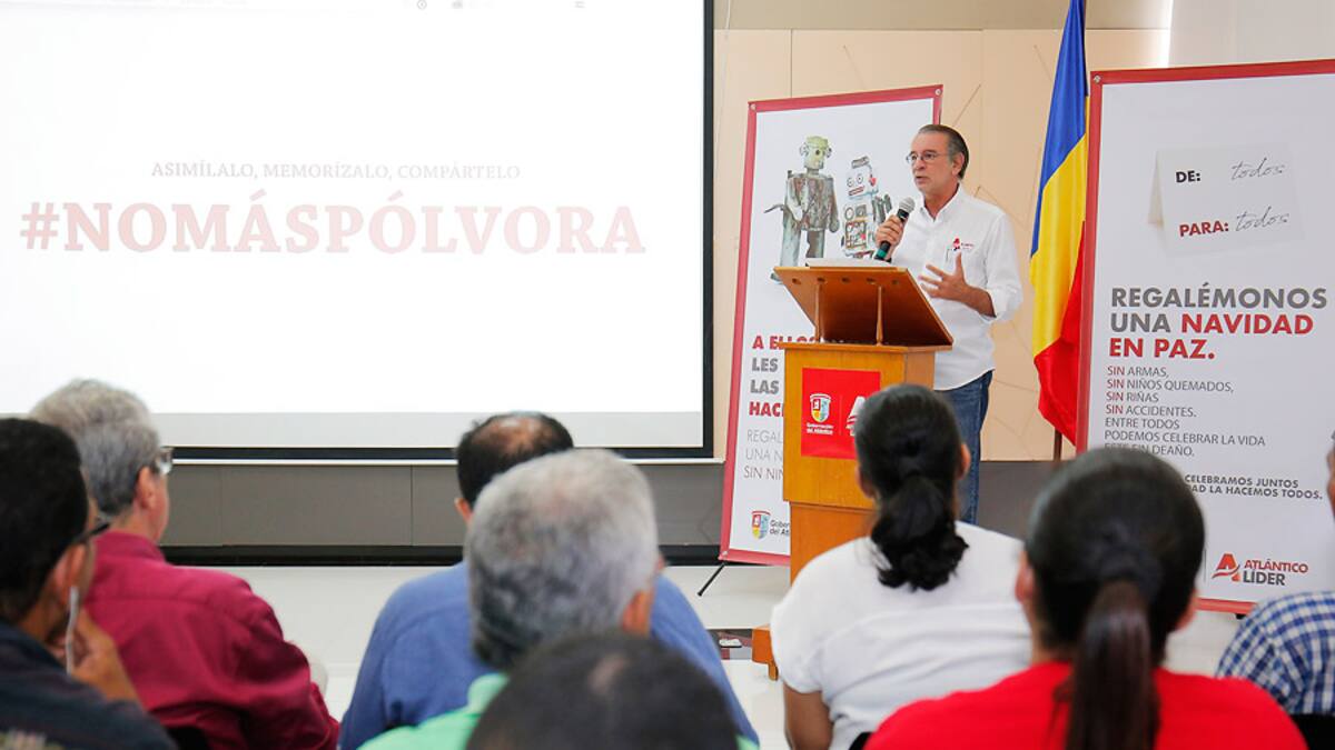Con el lema 'No más pólvora', el gobernador del Atlántico, Eduardo Verano De la Rosa, hizo el lanzamiento de la campaña navideña que busca evitar riesgos de quemaduras e intoxicaciones, especialmente en los niños, durante la temporada de Navidad y fin de año.