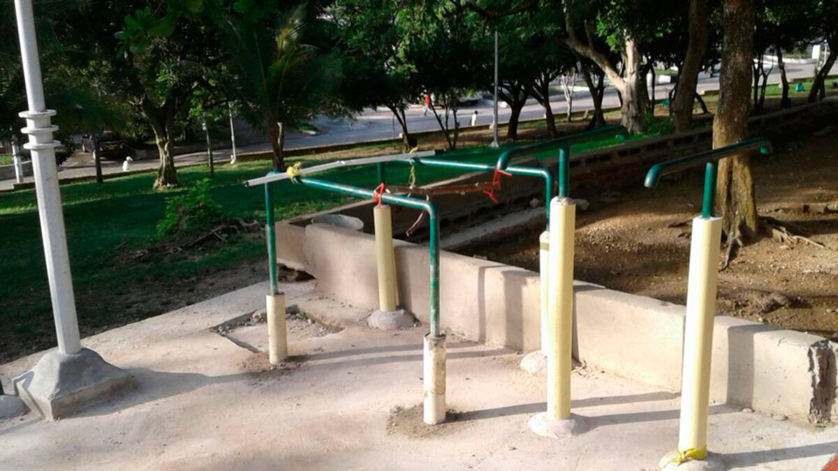A través de la línea Wasapea a EL HERALDO, los ciudadanos del barrio Ciudad Jardín reportaron con fotografías bancas del parque Sagrado Corazón en mal estado, que representarían un peligro para quienes las usen, y barras para hacer ejercicio que están oxidadas y presentan 'arreglos improvisados' que podrían causar accidentes.