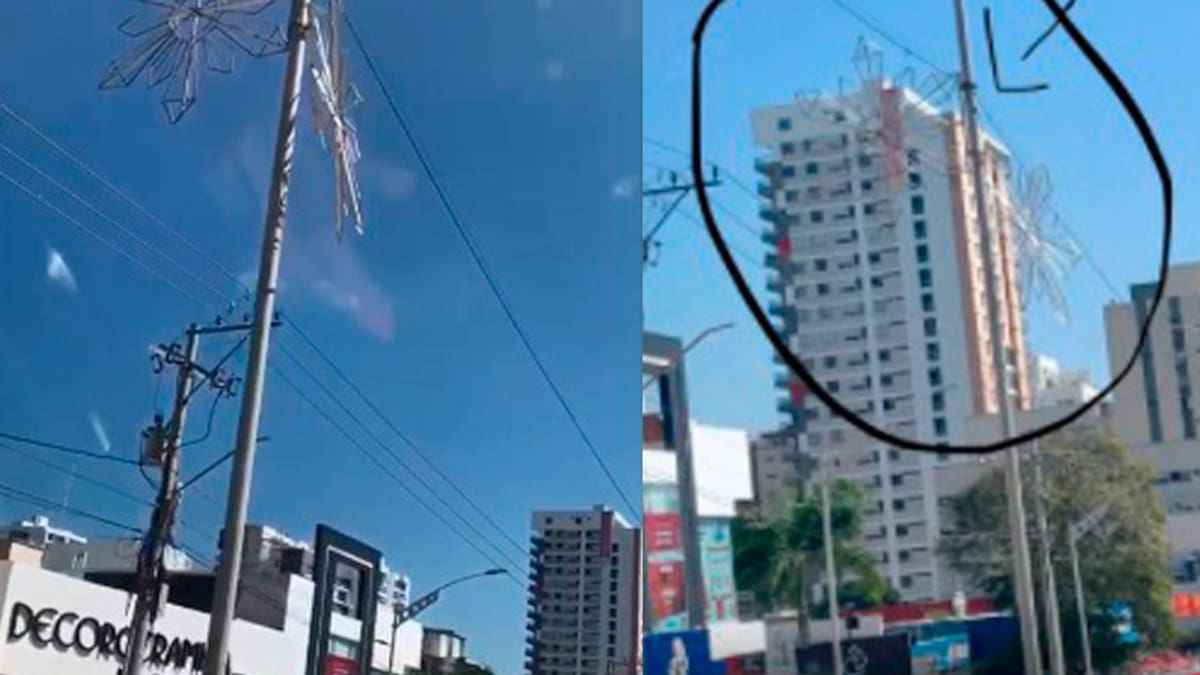Desde horas de la mañana del jueves, usuarios que transitaban en la calle 51B entre calle 85 y 84 reportaron que parte de la decoración navideña instalada en una de las luminarias del separador de la calle se encontraba 'a punto de caer'.