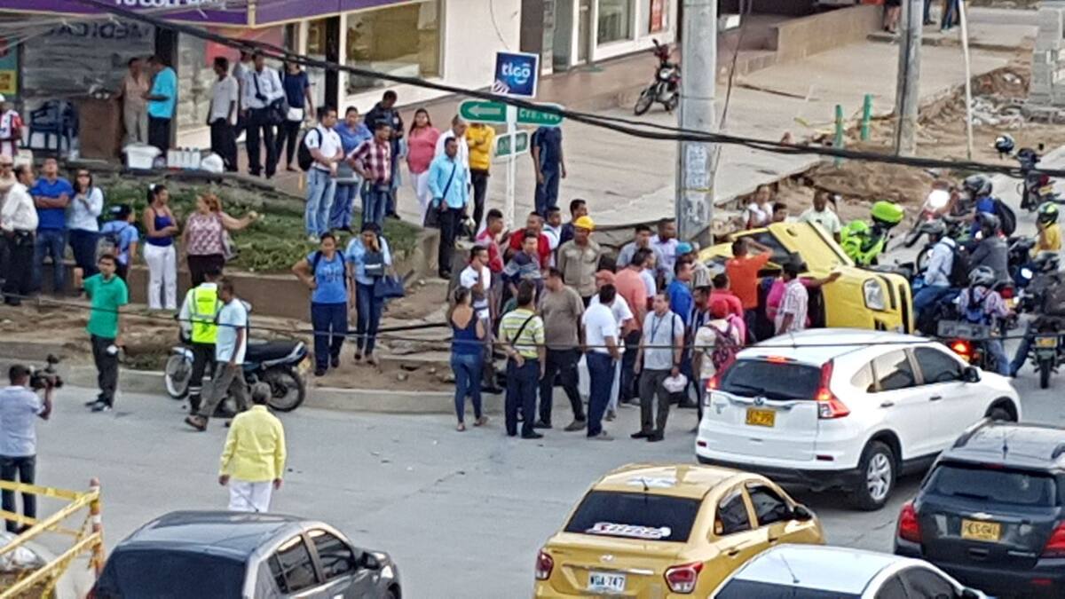 Según informaron usuarios de la línea Wasapea a EL HERALDO, el conductor del taxi que bajaba por la carrera 49 c y el carro que conducía por la calle 76 se encontraron en la esquina ya que 'ninguno de los dos hizo el pare'.