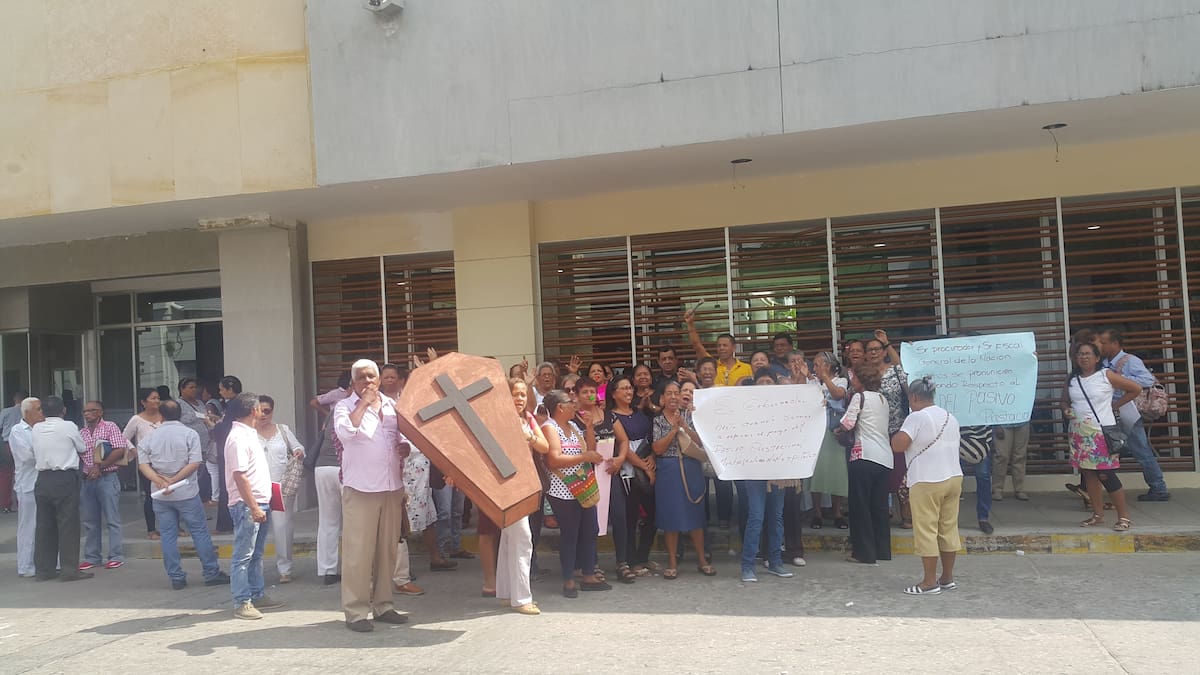 Para exigir el pago del pasivo prestacional (pago de mesadas pensionales acumuladas) desde 1976 hasta 1993, protestaron en las afueras de la Gobernación del Atlántico los ex trabajadores de los hospitales Universitario, Barranquilla y el desaparecido hospital San Francisco.