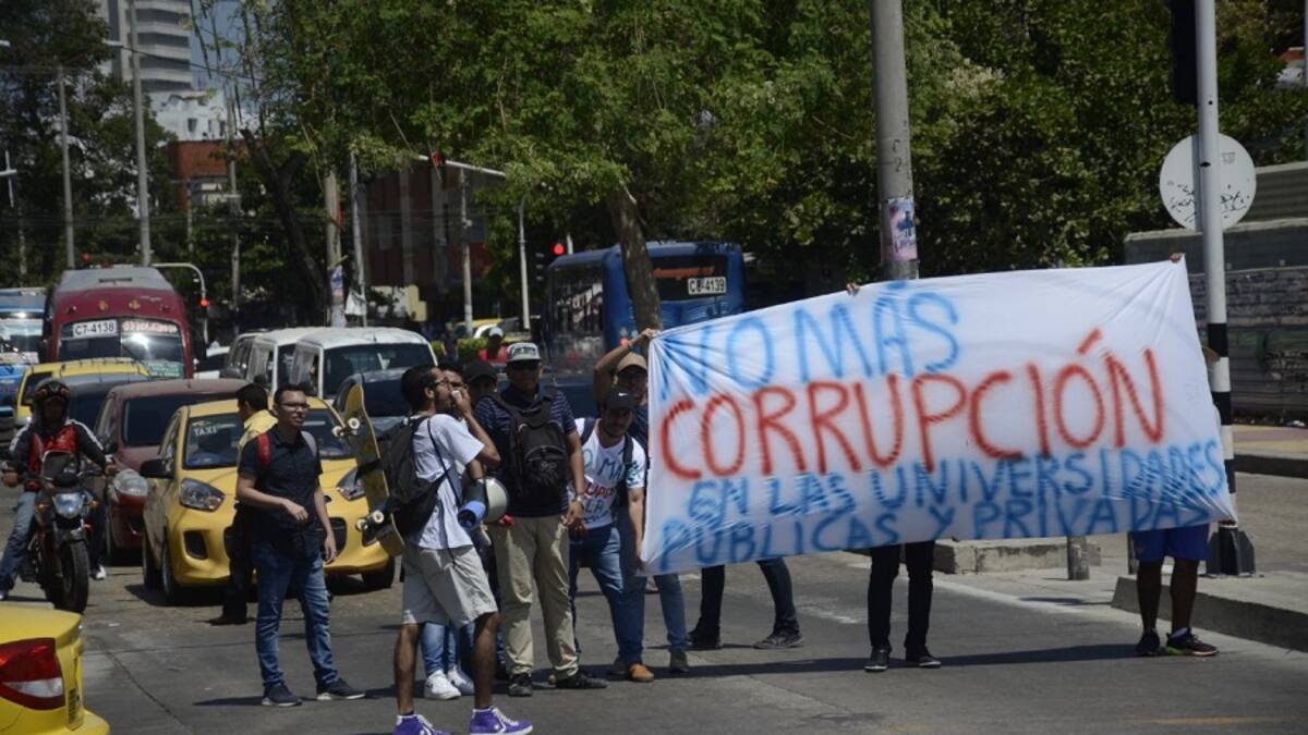 'A situaciones increíbles, medidas increíbles', expresaron los jóvenes mientras sujetan una pancarta que dice 'No más corrupción en las universidades públicas y privadas'.