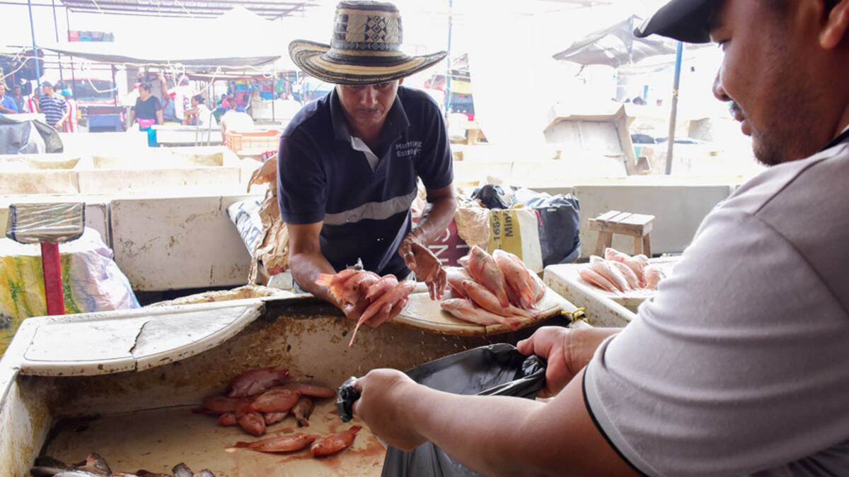En la popular plaza del Pescado de Barranquilla se encuentran cientos de peces de diferentes tamaños como la mojarra, pargo rojo, bocachico, bagre y lebranche, entre otros.