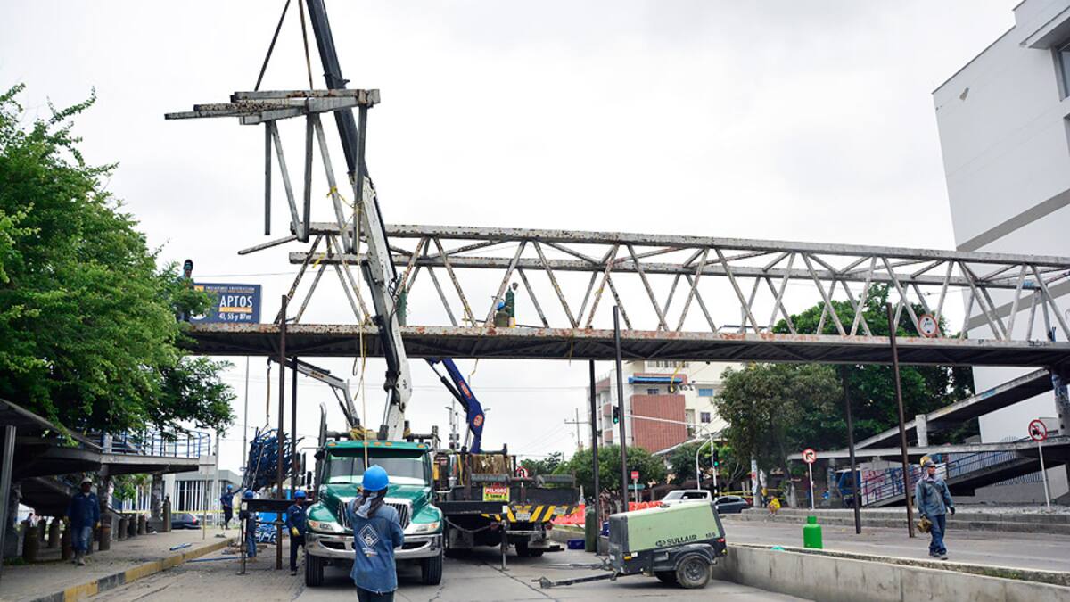 La Alcaldía de Barranquilla a través de la Secretaría de Infraestructura empezó este domingo el desmonte del puente peatonal de la carrera 46 con calle 90. La administración indicó que la decisión se tomó en respuesta a las solicitudes de ciudadanos sobre el riesgo en que se había convertido la estructura que estaba en avanzado estado de deterioro.
