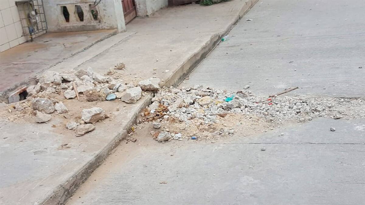 La fuga de agua fue reparada el pasado 11 de junio por la empresa de servicio público. Al finalizar los trabajos, los operarios dejaron los escombros en el lugar y se marcharon, sin pavimentar la parte donde tuvieron que partir para reparar el daño. Desde ese día los escombros permanecen en el lugar, dificultando el paso vehicular como peatonal.