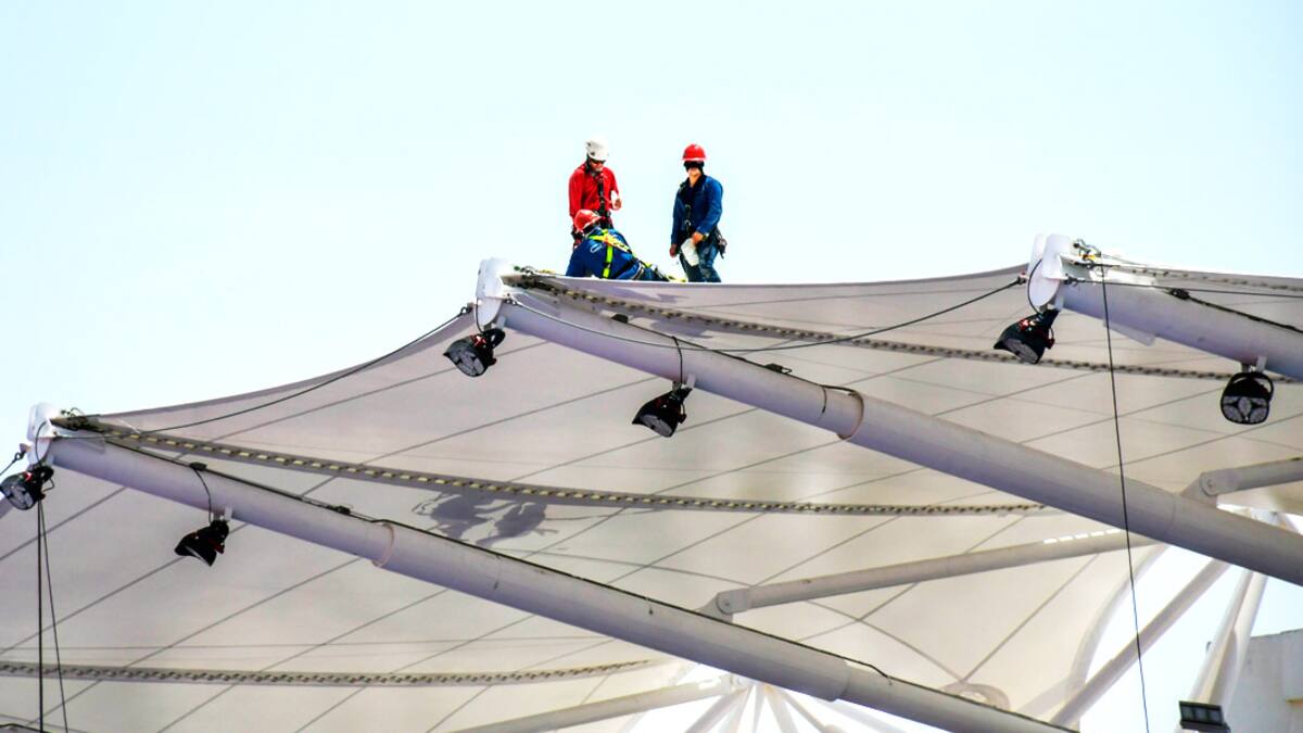 Este escenario que llevará por nombre Álex Cujavante, en honor al deportista barranquillero, está listo. Ya fue instalada la membrana arquitectónica (cubierta o techo) de la gradería principal y ahora se arman las estructuras metálicas que servirán de tribunas alternas para que ingresen más espectadores.