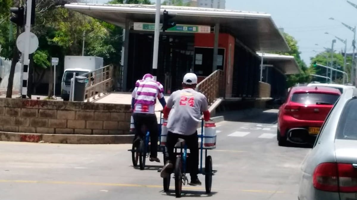 'Estos dos señores iniciaron su travesía desde la calle 70 y finalizaron en la estación que queda por la Gobernación. Debido a mis constantes reclamos para que se salieran de esa vía para proteger su vida y la de los pasajeros que usan el Transmetro, estos no hicieron caso', explicó el usuario.