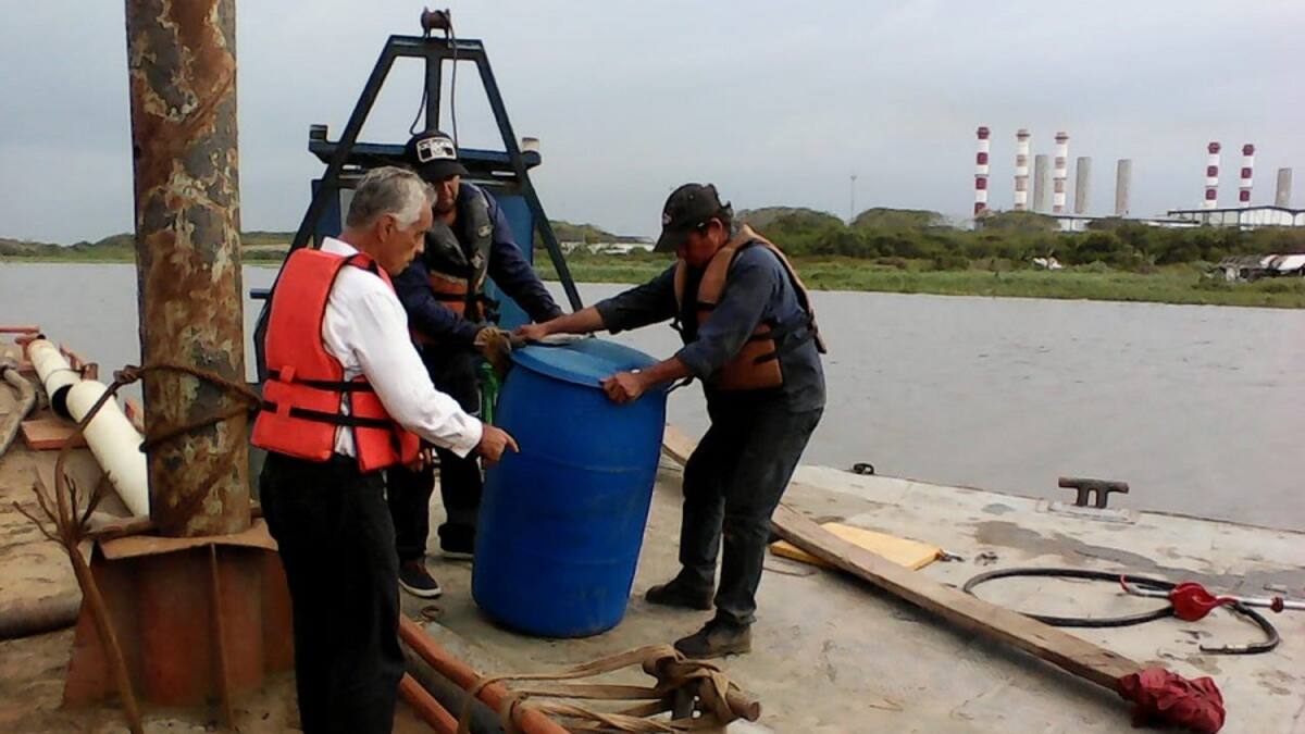 'Como medida para prevenir derrames, en la tarde de hoy se terminó de extraer el aceite hidráulico de la draga, con el acompañamiento de @Dimarcolombia y @SomosTripleA', escribió en su cuenta la CRA.