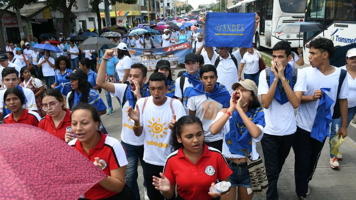 La movilización que fue convocado por la Federación Colombiana de Trabajadores de la Educación (Fecode) en todo el país, partió a las 10:30 de la mañana desde el parque Cementerio Universal (en la capital de Atlántico), recorrió gran parte de la calle Murillo, bajó por la carrera 46 hasta llegar a las puertas de la Gobernación del Atlántico.