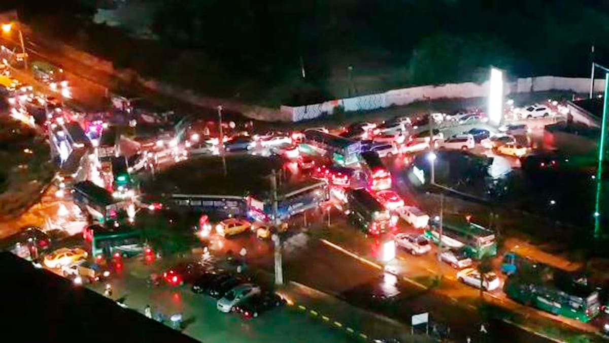 De acuerdo con uno de los conductores, el tráfico vehicular, que se inició hacia las 6 de la tarde de este martes, se debe a la imprudencia de algunas de las personas que invadieron el carril contrario.