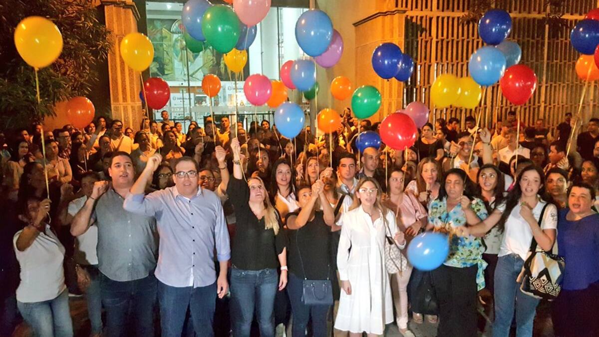 Con globos de diferentes colores, secretarios y demás empleados de la Alcaldía de Barranquilla pidieron para que los captores del menor lo dejen libre.