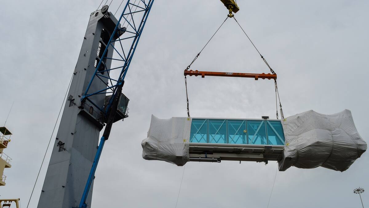 Las estructuras, tipo Apron Drive, admiten múltiples alturas de atraque y movimientos amplios, gracias a sus mecanismos ajustables de manejo y elevación, así como máximos niveles de seguridad y confort. Fueron elaboradas en cristal y traídas desde Barcelona en la Nave Cóndor Bilbao, representando una carga de 16,5 metros de largo y 3,9 de ancho.