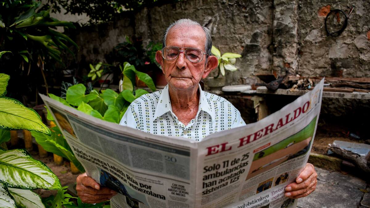 'Lo leo por secciones, empiezo por las noticias más importantes. Es que EL HERALDO es lo que me mantiene conectado con la ciudad y el mundo, porque ya no oigo. Es un periódico serio, objetivo que se ha mantenido mientras otros han desaparecido. Cuando no lo leo es como si no tomara café en la mañana', confiesa, sin soltar su bastón de apoyo