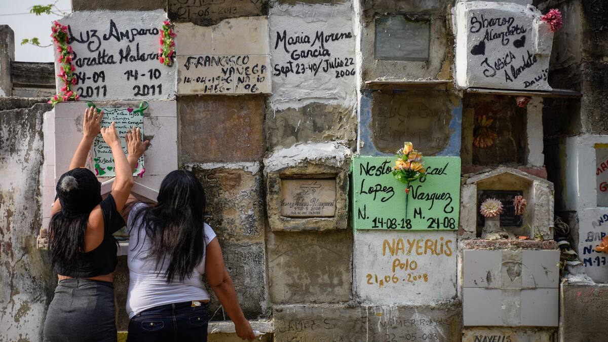 'Vine a visitar la tumba de mi nieto junto a otros familiares. Nos hemos encontrado con un panorama muy distinto, el cementerio está muy cambiado', sostuvo la mujer mientras instalaba una especie de cadeneta de flores en la bóveda.