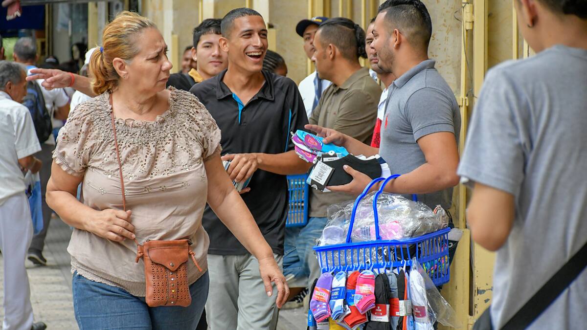 'Si el cliente no va a buscar las medias hasta el almacén, entonces las medias van a buscar al cliente'. Este es el mensaje que quieren dar los vendedores ambulantes en el Centro de Barranquilla, quienes recorren el Paseo Bolívar vendiendo calcetines en canastas de plástico. Se le cruzan al transeúnte, le ofrecen el producto, anuncian la promoción y continúan merodeando por el sector. Tienen artículos de todos los motivos y géneros, para bebés, niños, adolescentes y adultos. 'Pregunte por lo que no vea', manifiesta Luis Zambrano, quien tiene una oferta, la cual consiste en vender tres pares de medias por $5.000. Así como esta modalidad con la que venden calcetines, también se ven el Centro vendedores de vidrios templados y carcazas 'para toda referencia de celulares', sostiene Darwin Macías.