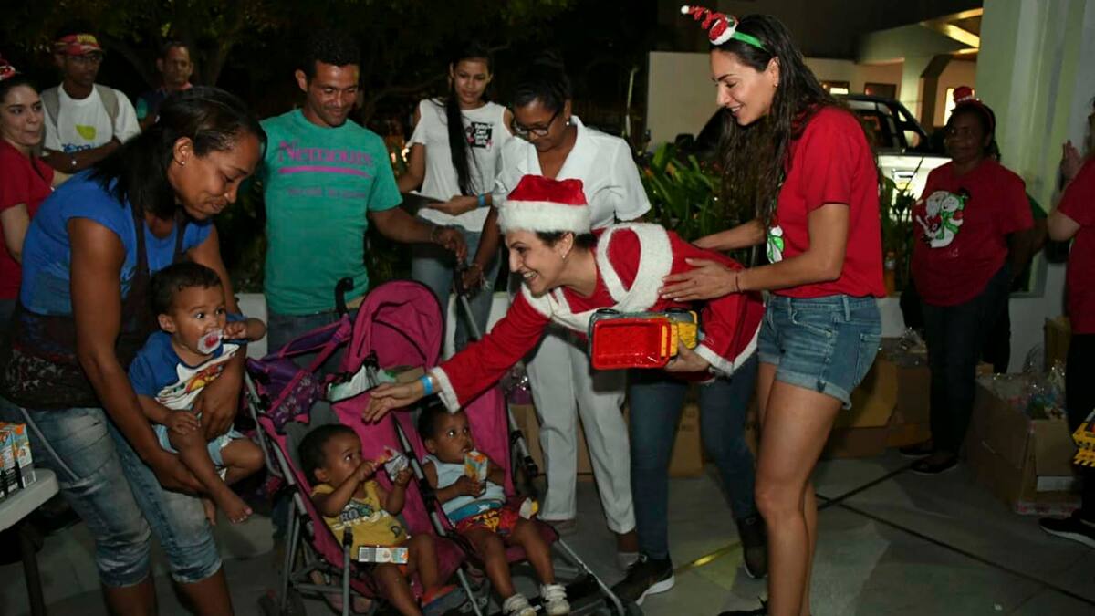 La repartición de regalos se inició a las 7:30 de la noche de ayer y contó con la presencia de la modelo y actriz Valerie Domínguez, quien desde hace varios años participa de la actividad.