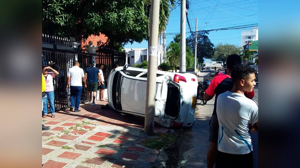 Trascendió que un vehículo, marca Logan, transitaba por la calle 85 y tras volarse la escuadra, impactó la parte trasera de otro carro, ocasionando el volcamiento de este y heridas a la mujer que conducía, según reportaron usuarios a la línea de Wasapea a EL HERALDO.
