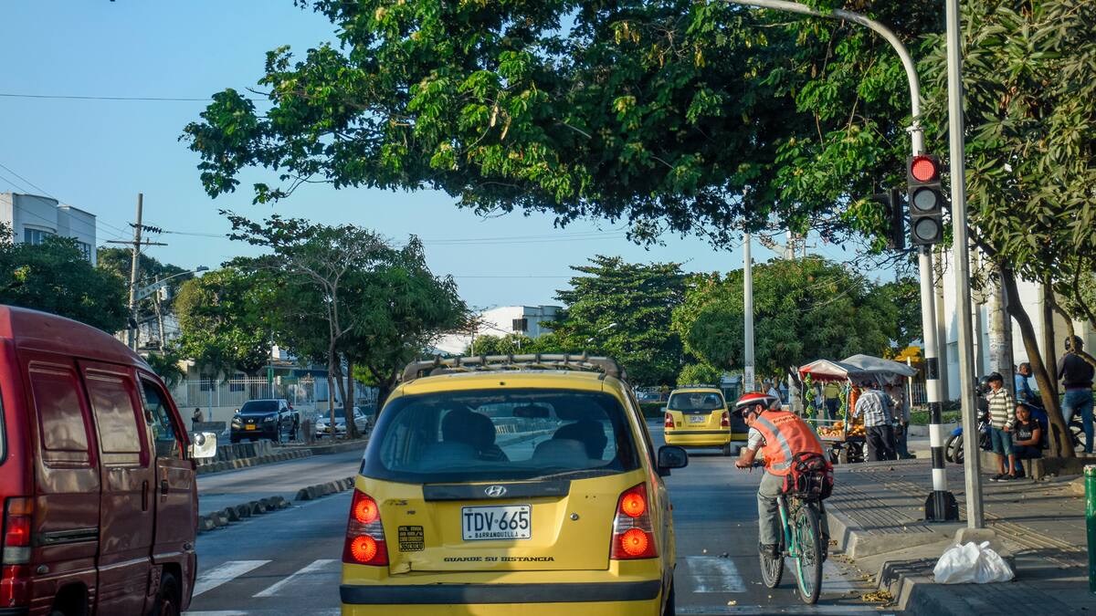 Mientras que los conductores de una van roja y un taxi ‘zapatico’ se detuvieron detrás del cruce con franjas blancas, el ciclista continuó su trayectoria, tomando el riesgo de atropellar a un transeúnte que a las 5:10 de la tarde se desplazaba por ese sector de Barranquilla.