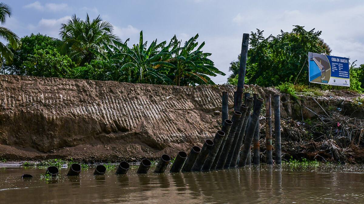 Desde una lancha sobre el río se aprecia además decenas de pilotes de hierros grandes derribados. 'Esos los pusieron solo hace 8 días y ya se cayeron', dice el conductor de la embarcación.