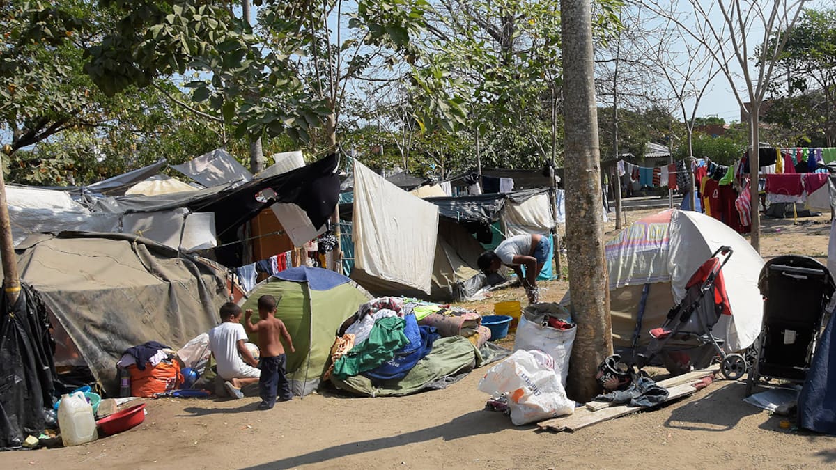 Las primeras familias de venezolanos, desalojadas de residencias y sin trabajo, llegaron a este campamento, frente al Estadio Metropolitano, junto a la Circunvalar.