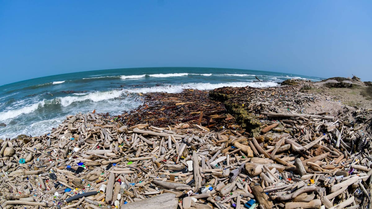 Una gran cantidad de troncos se posan sobre la orilla del mar de Punta Roca, en el corregimiento de Salgar, convirtiendo al lugar en una alfombra de residuos.