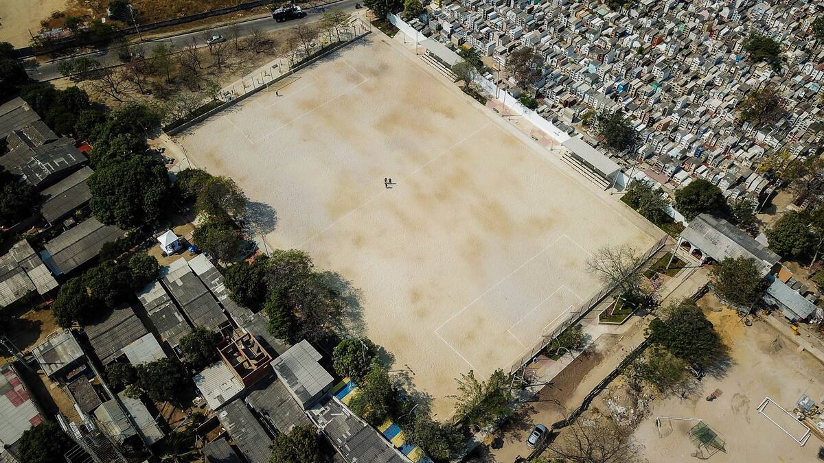Según la secretaría de Deportes de Soledad, la cancha, que permaneció durante varios años sin intervención, ocupa un total de 7.500 metros cuadrados. Además, confirmó que las obras incluyeron el drenaje del escenario, la construcción de graderías, cerramiento con mallas, iluminación, gimnasio biosaludables y senderos.