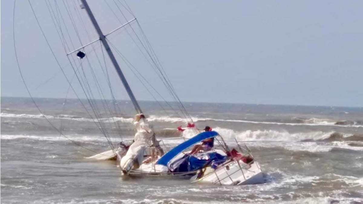 Personal de la Estación de Guardacostas de la Armada Nacional acudió al lugar en donde detectaron la presencia del velero encallado en la arena y con dos tripulantes a bordo.