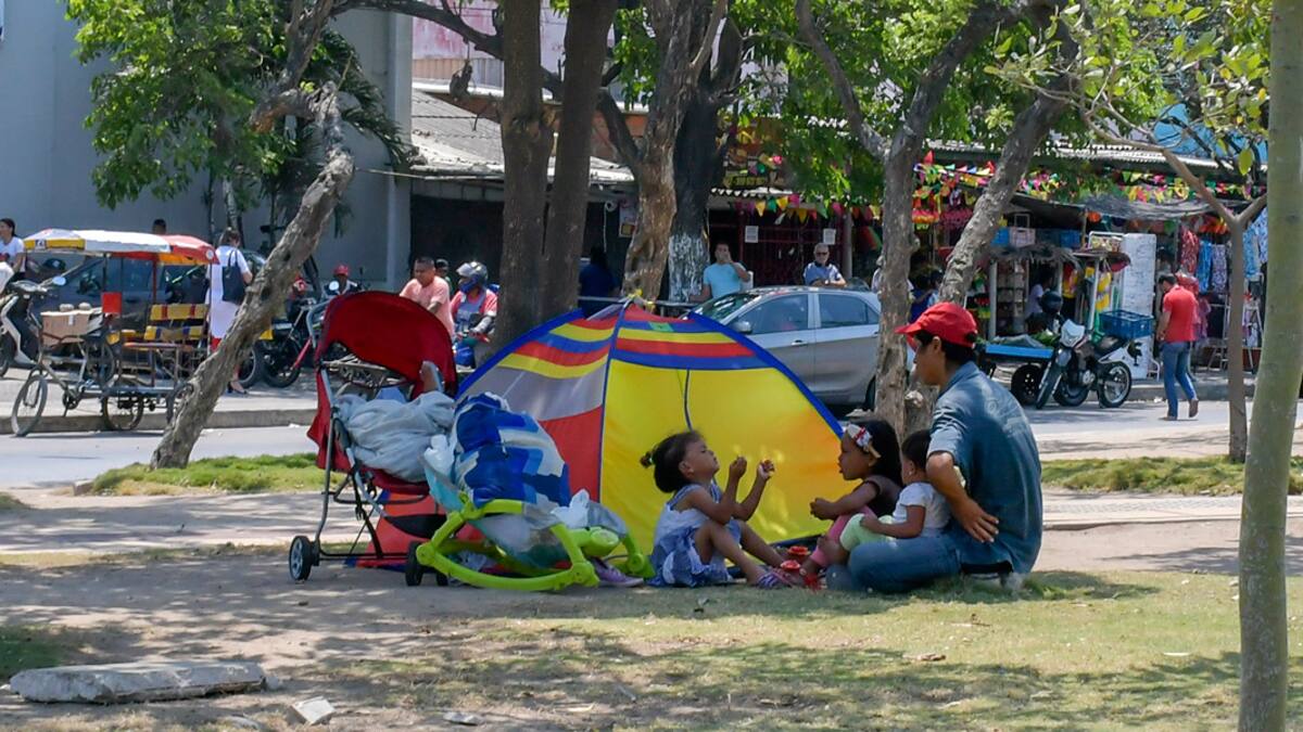 Una pequeña carpa armada en el bulevar de Simón Bolívar ha sido el hogar de Jeison Castillo, junto con su prima y sus tres hijas, durante las últimas cuatro noches. El hombre y sus parientes llegaron desde Santa Marta, donde habían estado residenciados desde hacía ocho meses luego de llegar de Valencia, capital del estado Carabobo, Venezuela.