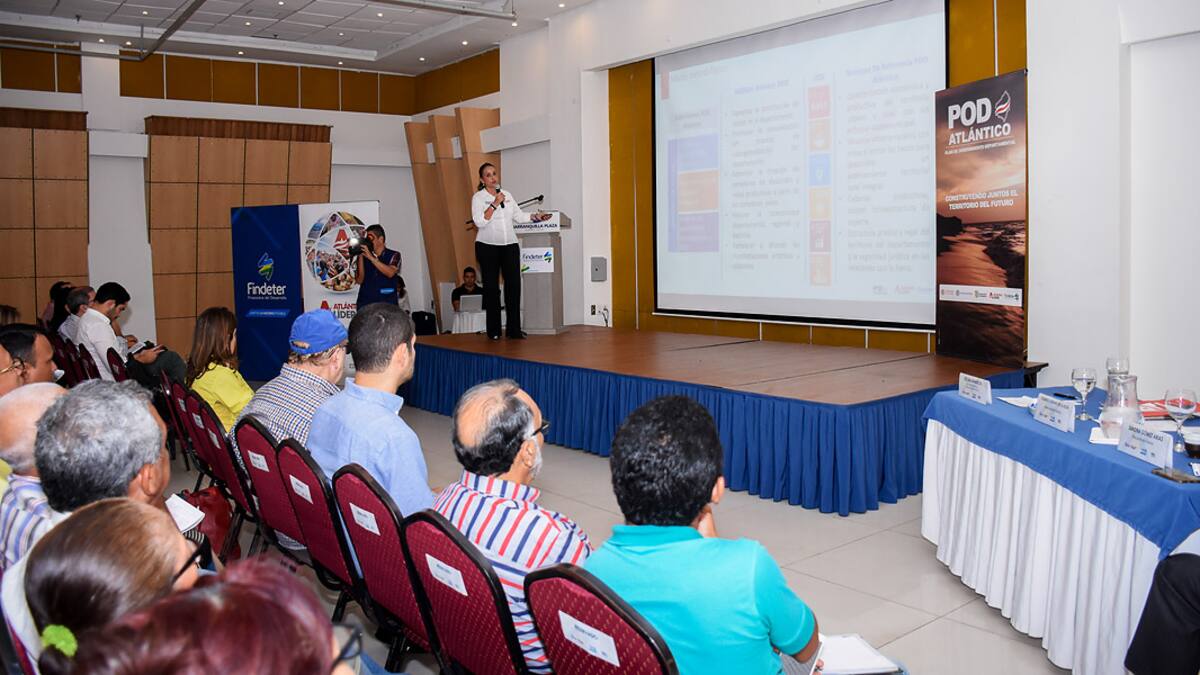 Durante el evento, el gobernador del Atlántico, Eduardo Verano; la presidenta de Findeter, Sandra Gómez Arias, y la secretaría de Planeación departamental, Cecilia Arango Rojas, presentaron a los alcaldes, concejales y a la academia la estrategia para el desarrollo del territorio dentro de los próximos 16 años.