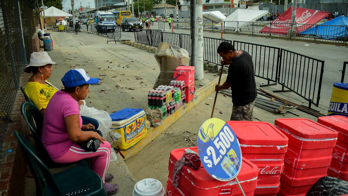 Como ellos, los primeros grupos de vendedores ya se asientan en los bordillos de la Vía 40 y se aglomeran en torno a sus productos.