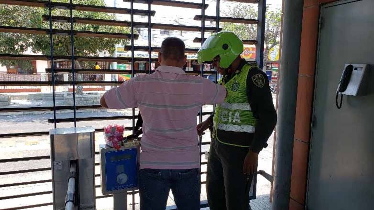 Agentes de la Policía Metropolitana de Barranquilla y facilitadores de la Secretaría de Control Urbano y Espacio Público del Distrito realizaron un operativo pedagógico de regulación de ventas ambulantes en seis (6) estaciones de Transmetro, en las troncales Olaya Herrera y Murillo.