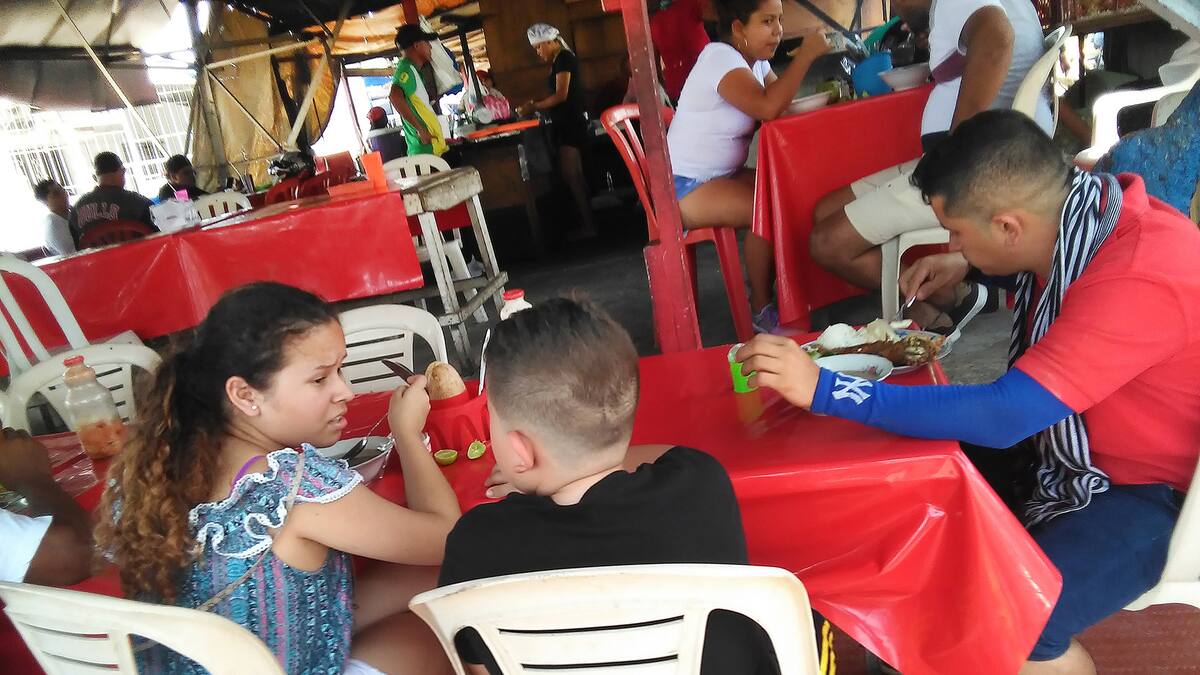 La preparación previa del plato, y las condiciones del lugar, es lo que menos incomoda a los comensales, las espinas yacen en el plato. Del pescado frito, solo queda el olor penetrante, que invade el lugar y, que ni la poca brisa logra dispersar.