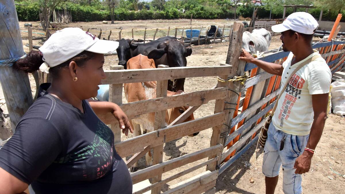 Además de las cuatro vacas, que comparten el mismo corral, la pareja tiene 23 chivos y unos cuantos cerdos. La parcela, ubicada junto al arroyo, es una tierra árida y seca, a la que, para entrar, hay que cruzar por un sendero improvisado de neumáticos viejos y llantas puestos sobre el agua.