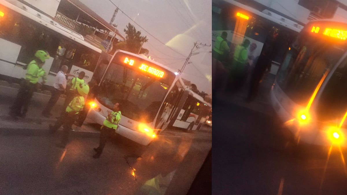 En la noche de este martes un incidente se presentó en la avenida Murillo con carrera 38 cuando al parecer un peatón cruzó la calle lejos del semáforo, lo que causó que el articulado que iba en el sentido sur – norte tratara de esquivarlo y pasara por encima del separador quedando detenido en la zona y generando retrasos.